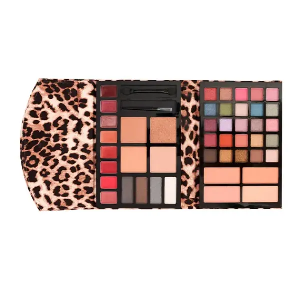 Contiene 29 sombras de ojos, 8 labiales, 8 polvos compactos y aplicadores.