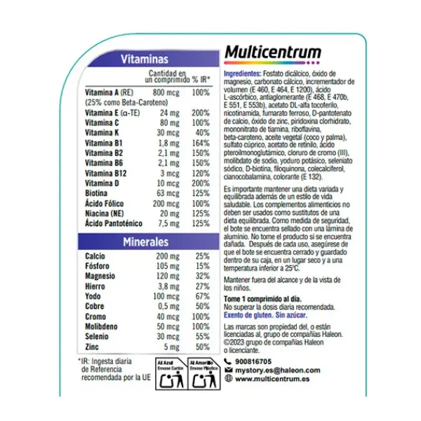 – 13 vitaminas y 11 minerales para hombres a partir de 18 años.