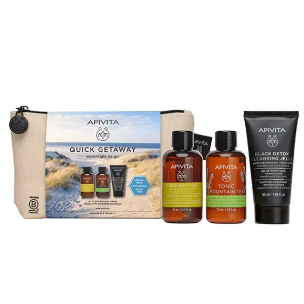 PROMOCIÓN DISCOVERY SET QUICK TRIP/ Limpiador Detox Negro 50ml & Champú Uso Diario 75ml & Gel de Baño Mountain Tea 75ml