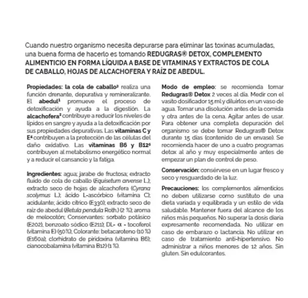 Después de excesos alimenticios, o antes de empezar un plan de control de peso, nuestro organismo necesita depurarse para eliminar las toxinas acumuladas una buena forma de hacerlo es tomando Redugras Detox durante 15 días.