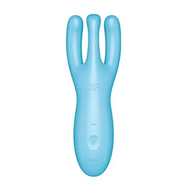 El vibrador de colocación Threesome 3 proporciona una estimulación sensual del clítoris y los labios vaginales en una amplia zona: con sus 3 brazos redondeados, cada uno de los cuales alberga un potente motor, tiene una forma ergonómica. Los dos brazos exteriores miman los labios mientras que el brazo central descansa centrado sobre el clítoris y se puede empujar hacia abajo para intensificar la estimulación.