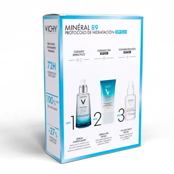 • Mineral 89 SPF50+ 50 ml: fluido diario hidratante rico en ácido hialurónico y escualano.