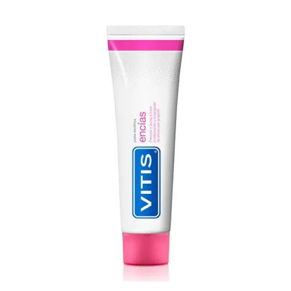 VITIS encías es una pasta dentífrica de uso diario que previene y ayuda en el tratamiento de los problemas de encías como la inflamación, la rojez o el sangrado.
