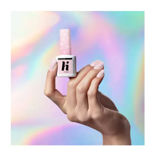 Base para esmalte semipermanente en tono rosa pastel que proporciona a las uñas un color delicado y ayuda a resaltar los tonos pastel y neón de los esmaltse UV gel Hi Hybrid.