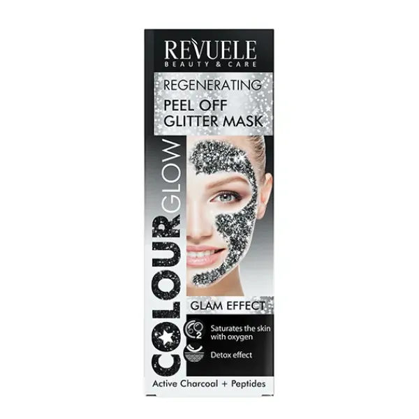 REVUELE COLOR GLOW BLACK MASCARILLA REGENERADORA PEEL OFF GLITTER.