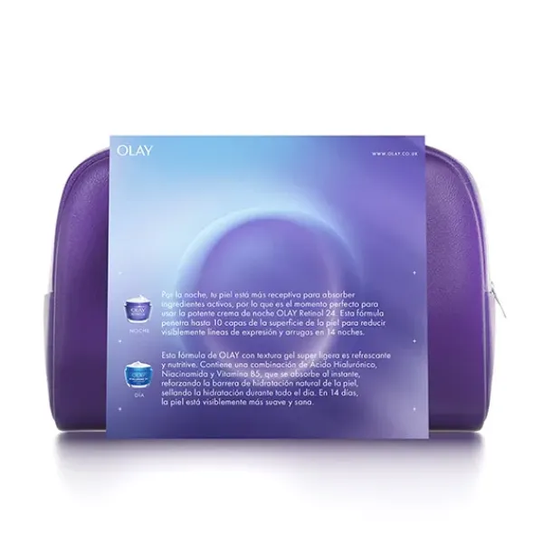 CREMA NOCHE: penetra profundamente en las capas superficiales de la piel. Nuestra mezcla patentada combina la Niacinamida con el Complejo Retinoide. Mantiene la piel hidratada durante 24 horas y ofrece numerosos beneficios. Notarás mejoras visibles en las líneas de expresión y las arrugas, en la suavidad y la luminosidad, en la firmeza de la piel y en las manchas y los poros. Esta crema hidratante, sin fragancias ni colorantes, se absorbe rápidamente y penetra en las capas superficiales de la piel para que te despiertes cada mañana con una piel radiante y rejuvenecida. Utiliza Olay a diario durante 28 días. Verás una verdadera transformación del aspecto de tu piel. La crema hidratante Retinol 24 es adecuada para un uso diario.