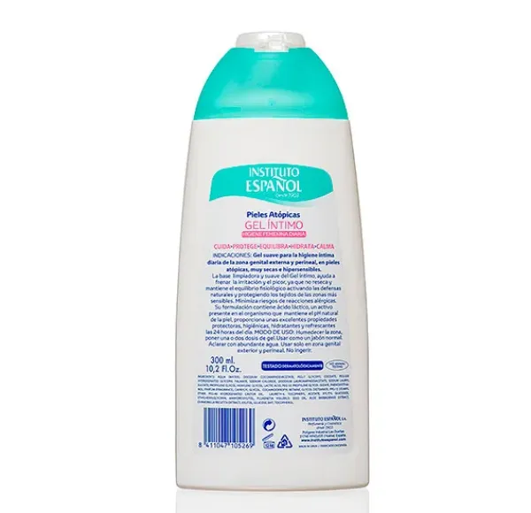 La base limpiadora y suave del Gel Íntimo para Pieles Atópicas ayuda a frenar la irritación y el picor, ya que no reseca y mantiene el equilibrio fisiológico activando las defensas naturales y protegiendo los tejidos de las zonas más sensibles. Minimiza riesgos de reacciones alérgicas.