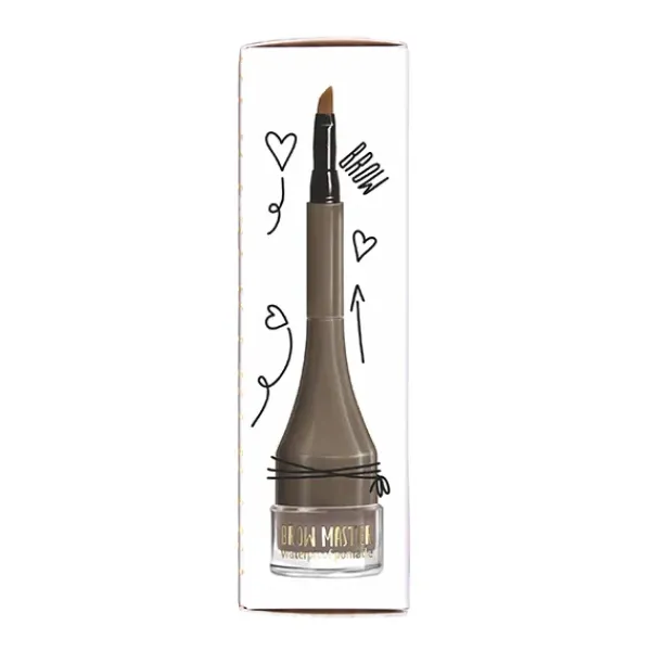 Gel crema para cejas resistente al agua en un frasco con un aplicador fino y preciso.