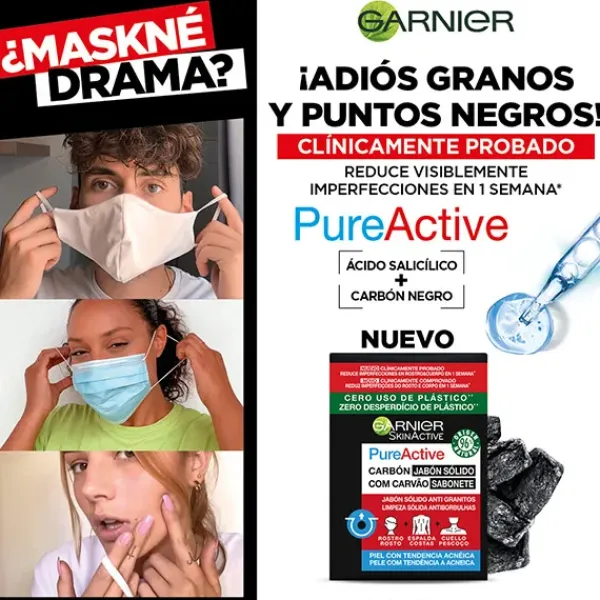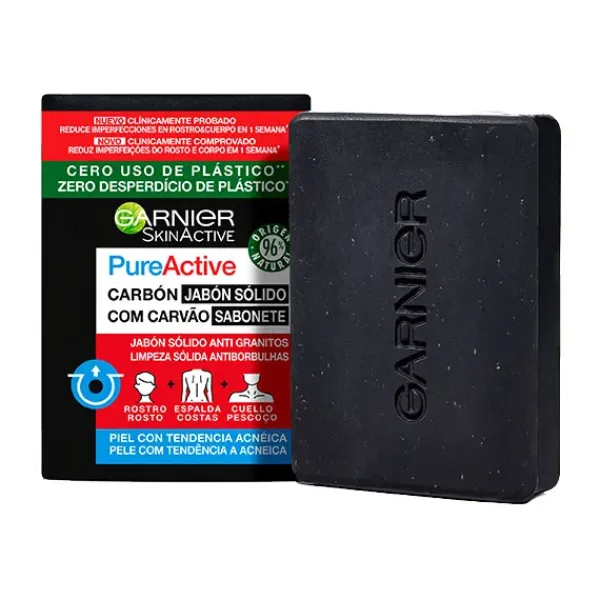 Garnier Pure Active jabón sólido anti-granitos con carbón y Ácido Salicílico es especial para el cuidado de la piel.