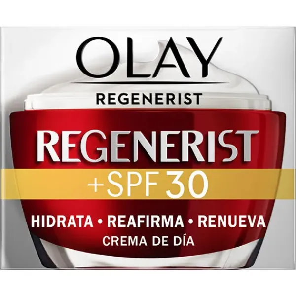 Protege la piel frente a los dañinos rayos UVA y UVB con la crema de día Olay Regenerist con SPF 30.