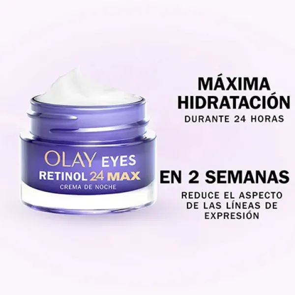 La crema de noche para el contorno de ojos Olay Regenerist Retinol 24 MAX hidrata, suaviza y recupera la luminosidad de los ojos para lucir una mirada más joven y radiante.