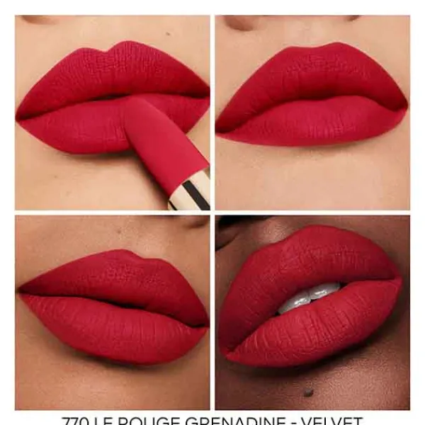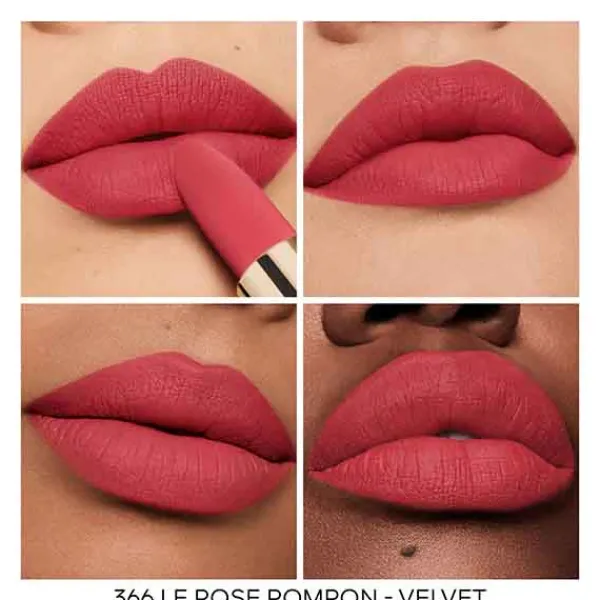 ¹ Porcentaje medio de la base de tratamiento sin pigmentos ni nácares en la gama Rouge G: Rouge G Velvet mín. 81 % y Rouge G Satin mín. 89 %.