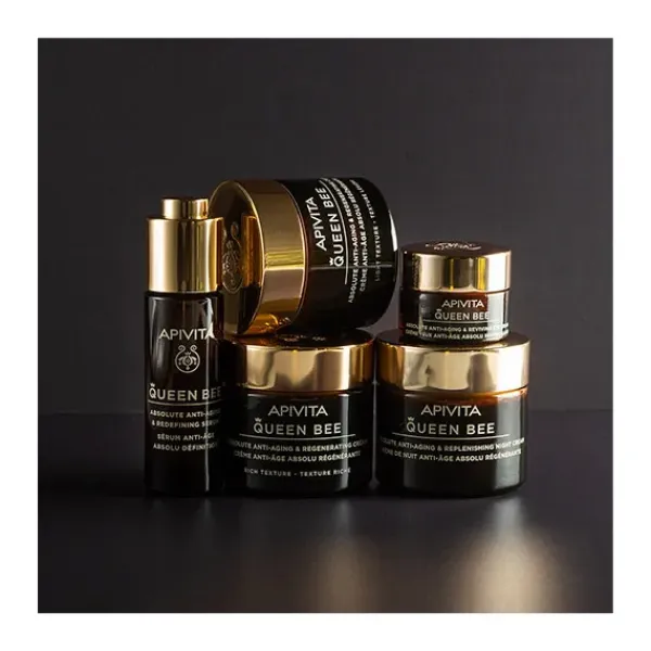 La quintaesencia vital de la colmena fusiona armoniosamente las propiedades rejuvenecedoras de la jalea real con los efectos regeneradores y protectores del propóleo y la miel, para conseguir la gama suprema QUEEN BEE.