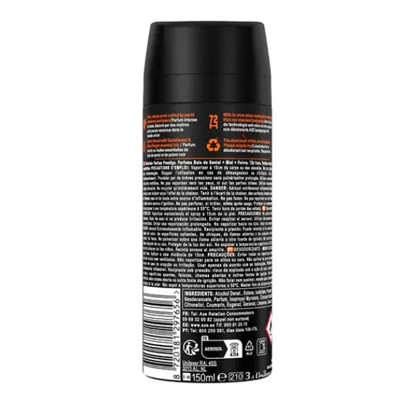 Desodorante en aerosol para hombre Axe Copper Santal Fragancia Premium 150ml.