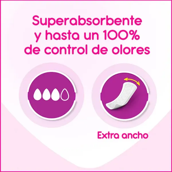 Con una nueva cobertura Tacto Suave que absorbe el flujo rápidamente y un núcleo superabsorbente que ayuda a retener la humedad al instante.
