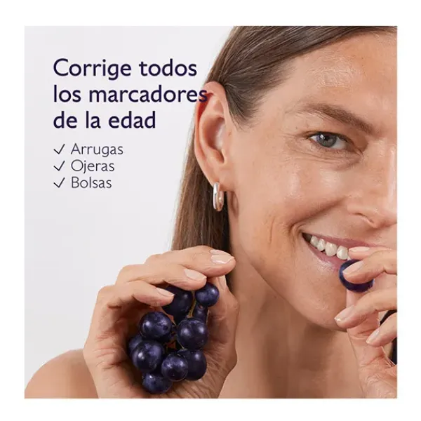 Su fórmula corrige todo tipo de arrugas del contorno de los ojos y de los labios, y su aplicador descongestionante reduce las ojeras y las bolsas para rejuvenecer visiblemente la mirada.