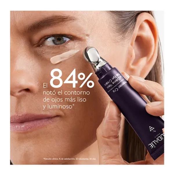 Reforzado con nuestra patente de longevidad y con un filler redensificante natural, El Contorno de Ojos Premier Cru ilumina y despeja la mirada.