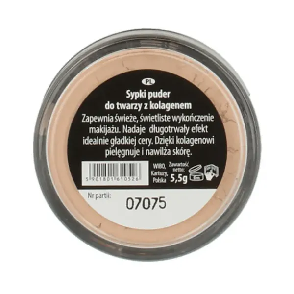 Polvos sueltos con colágeno. Aporta un acabado sedoso, suave y brillante. Gracias a su contenido en colágeno, nutre e hidrata la piel dejándola suave y fresca.
