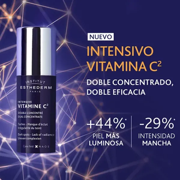 El sérum Intensive Vitamina C es el primer sérum con dos tipos de vitamina C con una eficacia inmediata y prolongada. Inmediata, porque los resultados se obtienen de forma rápida. Prolongada, porque su acción perdura en la piel. Esta doble acción se consigue a través de los dos tipos de vitamina C: vitamina C pura (10%) y provitamina C (2%).