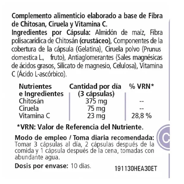 Complemento alimenticio elaborado a base de Fibra de Chitosan, Ciruela y Vitamina C.