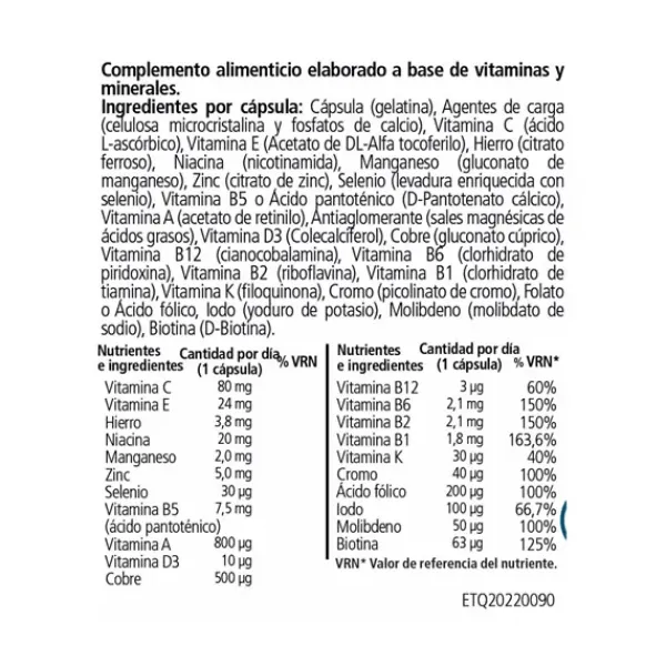 Complemento alimenticio elaborado a base de vitaminas y minerales.