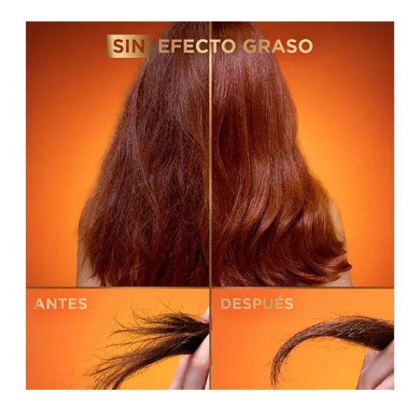 Este cuidado capilar con tecnología súper sérum no deja residuos en el cabello, gracias a su textura que no deja sensación pegajosa ni grasa en el cabello. Su fragancia combina una nota de ámbar fresca y afrutada, con un ligero final de miel cremosa y fresca.