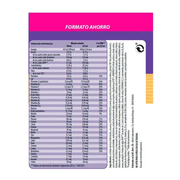 Con vitamina D que contribuye al buen funcionamiento del sistema inmunitario de los niños.