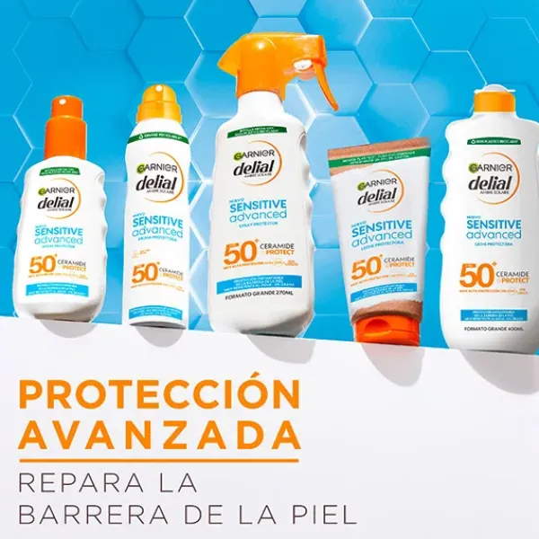 Protección solar fotoestable contra los rayos UVB, UVA incluso largos, y efectos de los Infrarrojos La bruma Sensitive Advanced ofrece protección muy alta IP50+, nuestra protección más completa contra los rayos UVB y UVA incluso largos, los rayos UV más numerosos y penetrantes, y algunos efectos de los infrarrojos ,causantes de daños celulares en la piel.