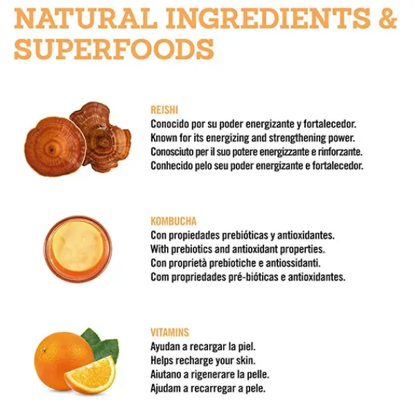 – KOMBUCHA: Activo milenario obtenido mediante un proceso de fermentación del té con propiedades prebióticas y antioxidantes.