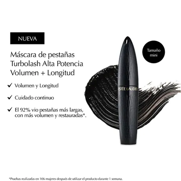 2. Turbo Lash Mascara en tamaño de viaje, 3ml: Nuestra máscara de pestañas de construcción más rápida. Proporciona un volumen y una longitud de gran potencia al instante, además de un cuidado continuo. Potencia 12 horas, no se emborrona ni apelmaza. Con una infusión de aceites naturales, esta fórmula protege y acondiciona las pestañas para hacerlas visiblemente más fuertes y espesas.