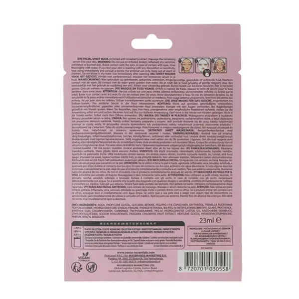 Mascarilla facial Sweet as a strawberry enriquecida con extracto de fresa.