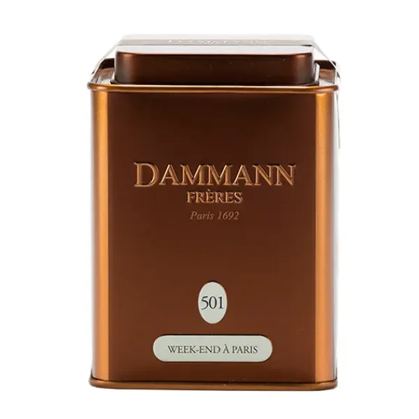 Té Oolong sabor Dammann Frères «Week-End À Paris» | Formato de venta 30 g. Las notas afrutadas y florales de un té Oolong ligeramente oxidado con frescura vegetal se combinan con un bouquet de aromas, combinando la sutileza de la flor de sakura y melocotón con la delicadeza de la almendra y la rosa en una mezcla sutil y refinada.