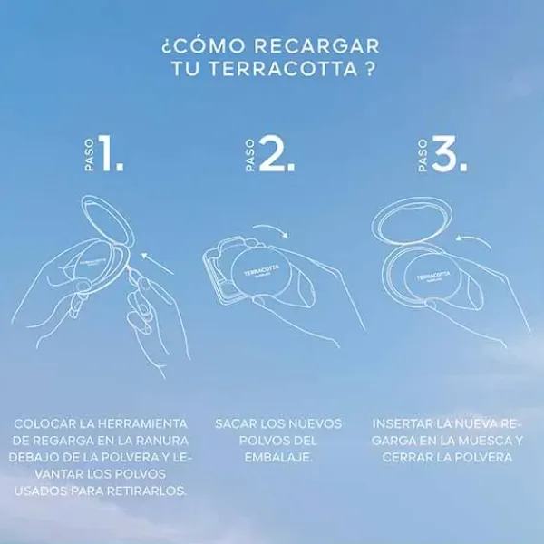 La fórmula de Terracotta Light ofrece una textura fundente y ultrafina que respeta el acabado natural de la piel. Una combinación excepcional de nácares de origen natural¹ para despertar la luminosidad de la tez durante todo el día.