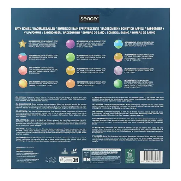 Dentro del set de regalo Sence Warm Wishes Bath Bomb, encontrarás doce alegres bombas de baño con colores explosivos y aromas cálidos para disfrutar.