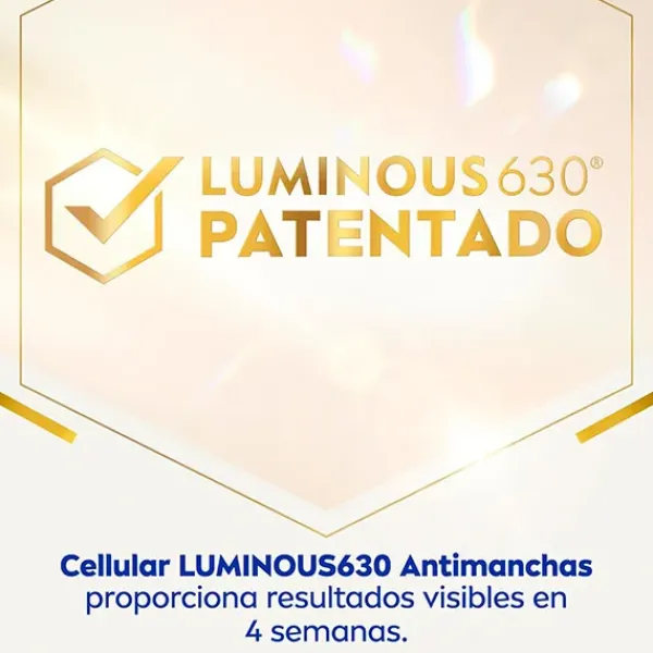 Con Luminous630 patentado que equilibra la pigmentación a nivel celular para reducir manchas oscuras y prevenir su reaparición + Booster de Colágeno.