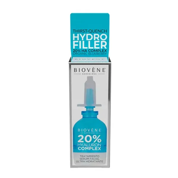 Tratamiento de suero facial hidratante para saciar la sed HYDRO FILLER con ácido hialurónico ultrahidratante y arándano orgánico adecuado para pieles apagadas, deshidratadas o secas que muestran los primeros signos de envejecimiento.