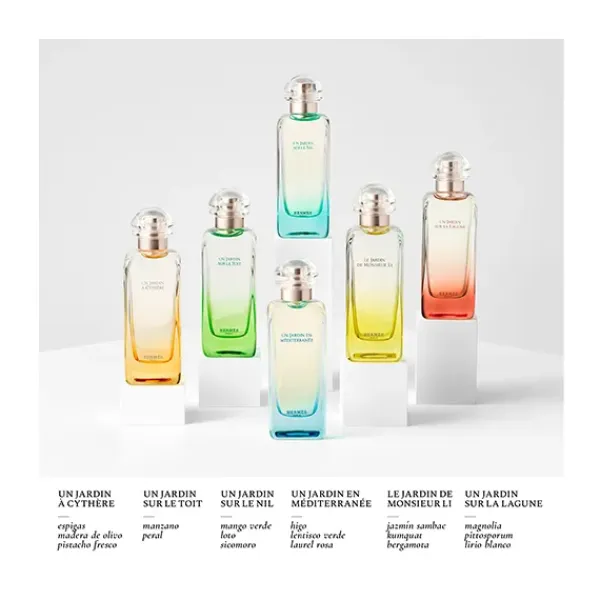 Esta fragancia es un jardín rebosante de vida, generoso y chispeante, donde los aromas del mango verde, la flor de loto y el cálamo aromático se entremezclan con las notas de incienso y madera de sicomoro.