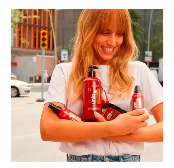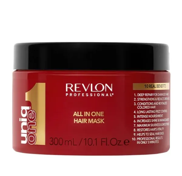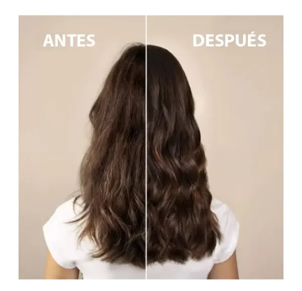Esta mascarilla ofrece los 10 beneficios que tu cabello necesita en 1 solo producto. Repara el cabello seco y dañado, brillo y control del encrespado, protección térmica, suavidad y sedosidad, protección del color con filtros UVA y UVB, facilita el peinado, efecto desenredante, nutre en profundidad, previene las puntas abiertas y aporta cuerpo y volumen.