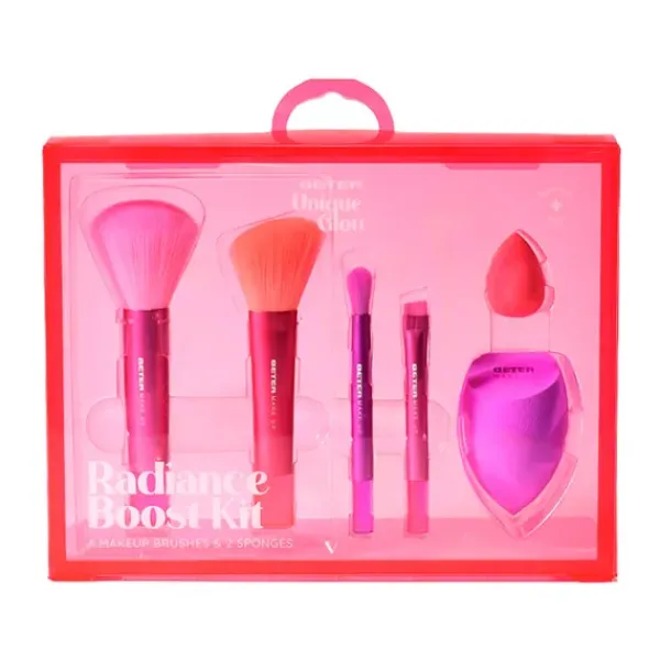 Contiene una esponja de maquillaje fluido, una esponja mini para corrector y cuatro brochas y pinceles de pelo sintético, los esenciales para conseguir cualquier look que te propongas con un resultado profesional.