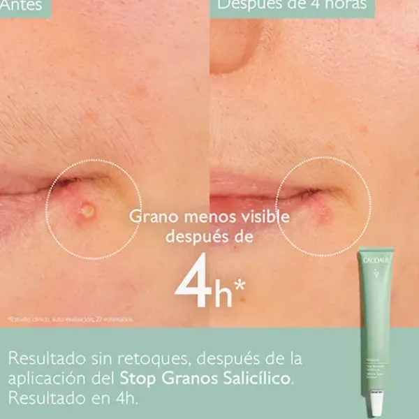 El Stop Granos Salicílico Vinopure reduce visiblemente los granos localizados en 1h*.