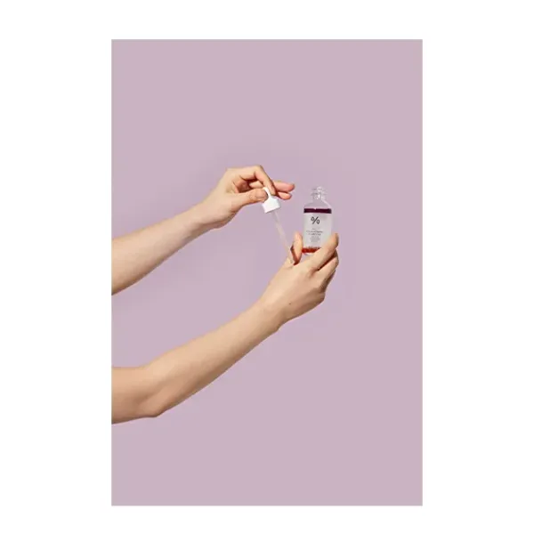 Serum bifásico formulado con Vitamina K soluble en aceite (fase oleosa) y un complejo Phito-vitamin K en la fase líquida que iguala el tono de la piel y combate las imperfecciones vasculares, como hematomas y ojeras, al mejorar la circulación sanguínea.