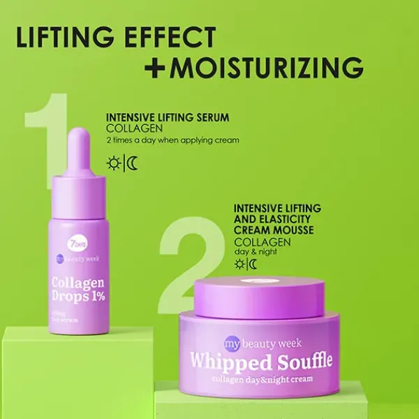 Hidratación Intensa: Crema 7DAYS WHIPPED SOUFFLE con colágeno para hidratación profunda y síntesis de colágeno.